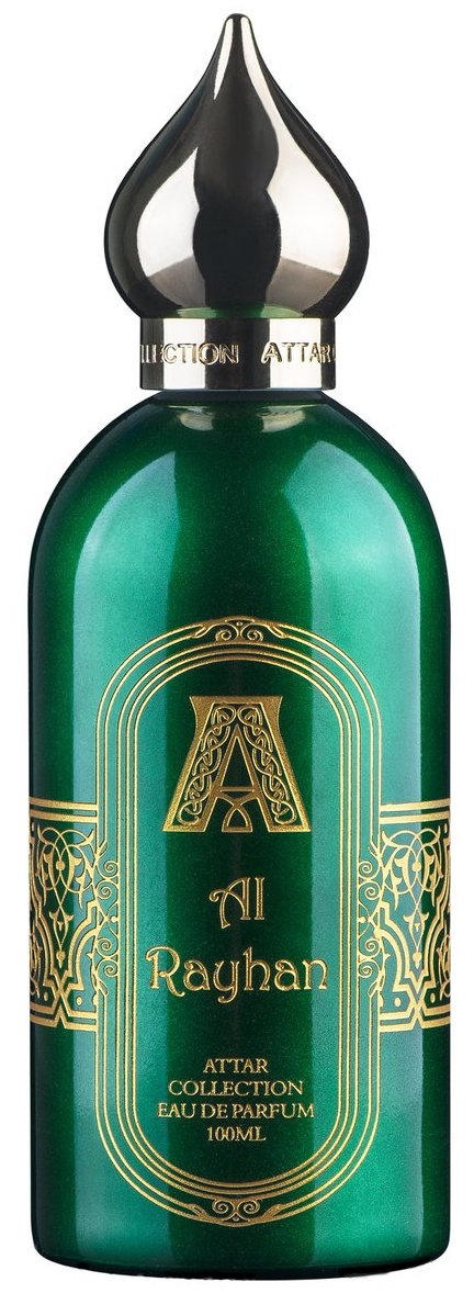 Attar Collection Al Rayhan – в переводе с арабского означает «блаженство», «удовольствие». Аромат символизирует райский сад, в котором под сенью тенистых деревьев поют прекрасные птицы, приглашая полакомиться восточными сладостями и насладиться божественными запахами белых цветов и тропических фруктов.