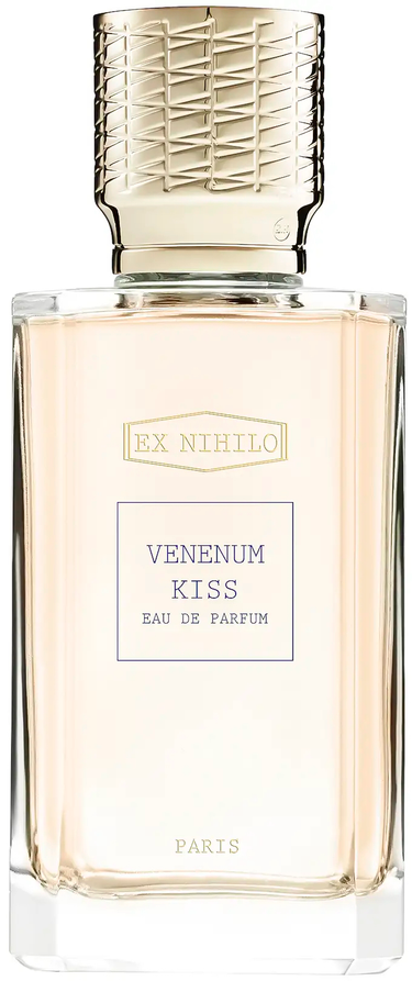 Ex Nihilo Venenum Kiss — аромат от бренда нишевой парфюмерии, который сочетает современную культуру с авангардным искусством и умеет создавать нечто необычное из привычных компонентов. В переводе название означает «Ядовитый поцелуй». Он посвящён тёмной ночи, полной искушений и страсти, которая отправляет сердце и душу, но которой невозможно противостоять. В нём вся красота Востока: роза, специи и сандал.